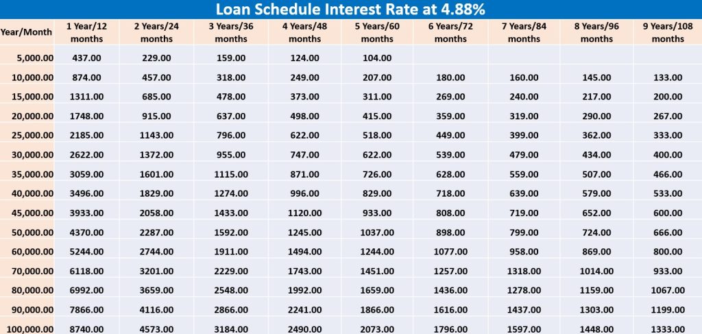 Note: 我们只借出最少RM5,000以上贷款, 低于不能做。